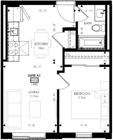 ● Unit has 1 bedroom, 1 bathroom